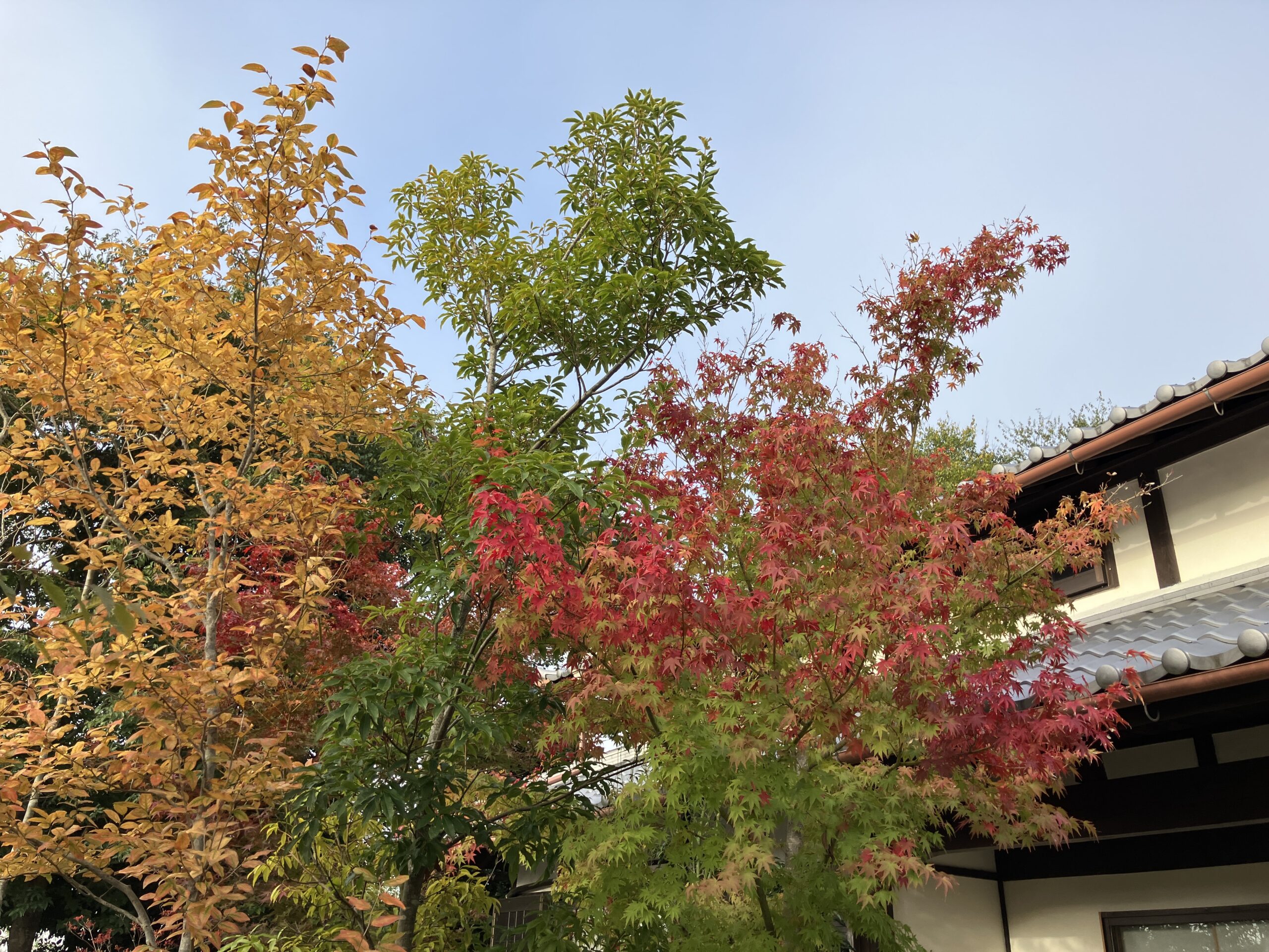 秋も本番です。庭木もずいぶん紅葉して、色とりどり。金木犀も満開でいい香りが漂っています。