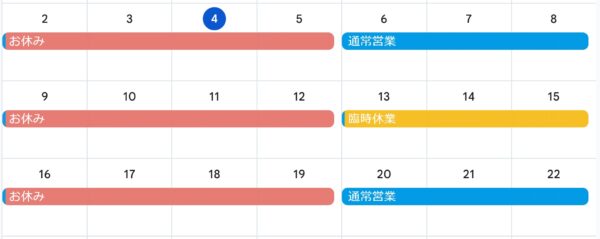 2026/02 臨時休業のお知らせ お知らせ 2026-02-04 誠に勝手ではございますが、次の期間は臨時休業させていただくことになりました。 2/13(金)~ 2/15(日) 臨時休業大変ご迷惑をおかけいたしますが、宜しくお願い申し上げます。